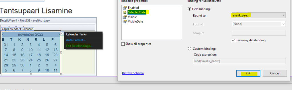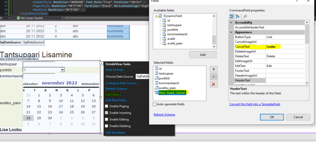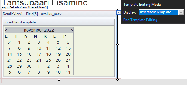 Дальше переходим в Edit Templates -> Display – InsertitemTemplate, в toolbox находим calendar и перетаскиваем его