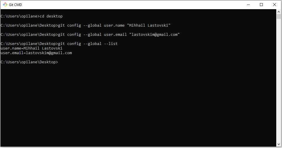 git config –global user.email “lastovskim@gmail.com”
