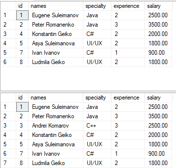 VALUES(2, 'Peter Romanenko', 'Java', 3, 3500);