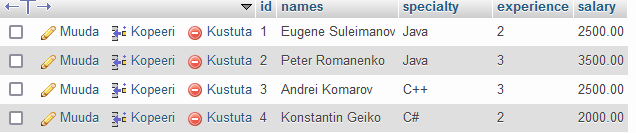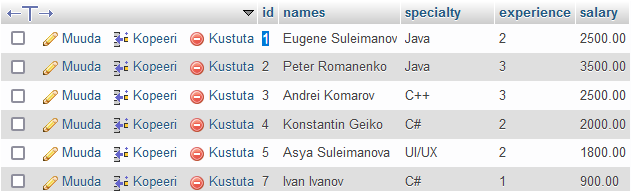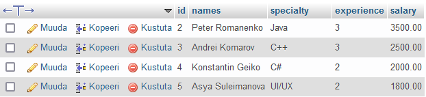 VALUES(3, 'Andrei Komarov', 'C++', 3, 2500);